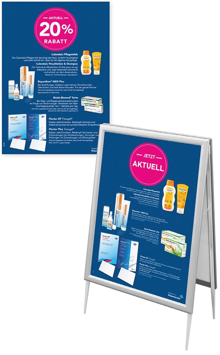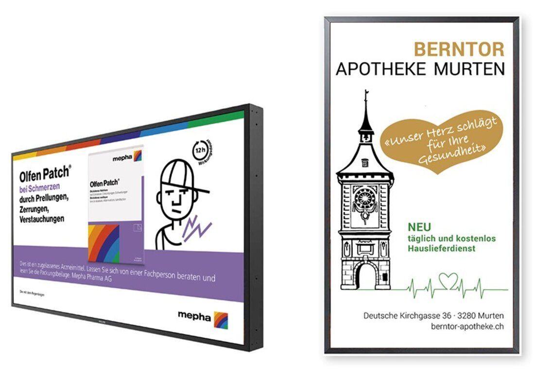 Beispiele unserer modularen Marketingleistungen sind unter anderem saisonale Promotionswände, OTC Monats-Hits, POS-Displays in analoger oder digitaler Form, Thekendisplays mit Kalender, Mini Screens, Media-Screens, Schaufenster-Screens, thematische Schaufenster, Aktualitätensteller und OTC-Zusatzgewinne.
